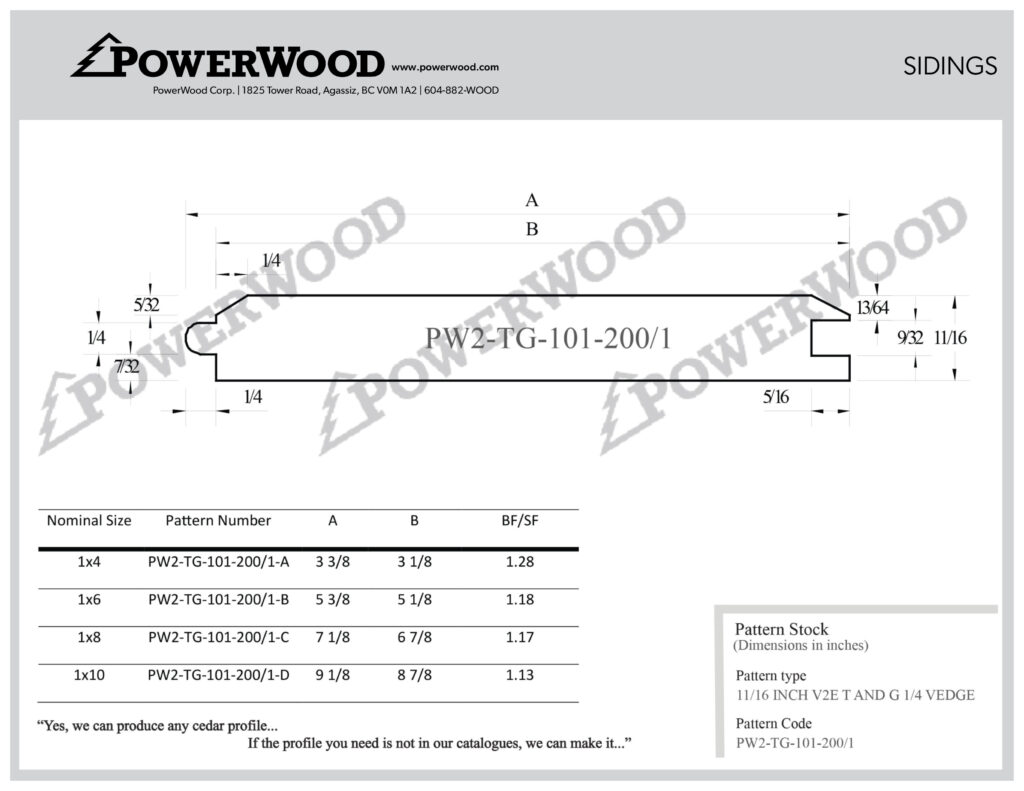 We have a large catalogue of pattern options for 1X4 1X6, T&G, 1X8 channel and more! There is no limit on patterns we can produce as we can customize patterns for your needs: